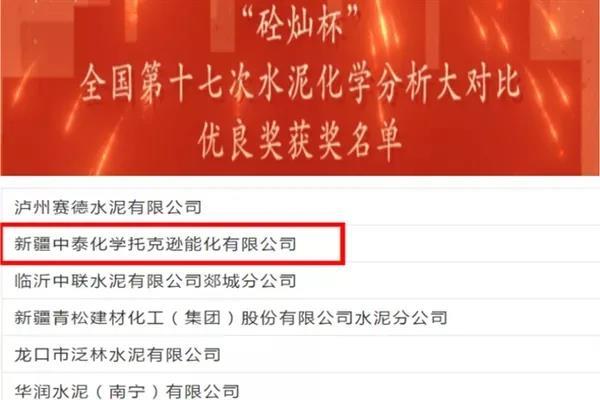 近日,國家水泥質(zhì)量監(jiān)督檢驗(yàn)中心權(quán)威發(fā)布全國第十七次水泥化學(xué)分析大對(duì)比獲獎(jiǎng)名單,新疆中泰化學(xué)托克遜能化公司(以下簡稱“托克遜能化”)榮獲全國第十七次水泥化學(xué)分析大對(duì)比“優(yōu)良單位”榮譽(yù)稱號(hào)。