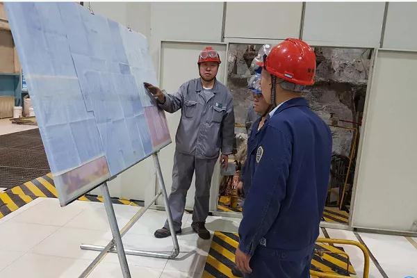 孫兆亮為現(xiàn)場檢修人員講解CAD圖紙 (乜峰 ?攝)