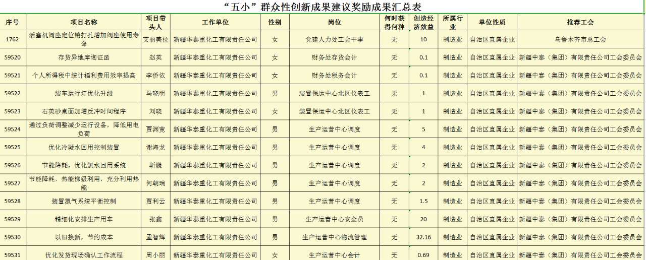 近日,新疆維吾爾自治區(qū)總工會(huì)公布了《2023年自治區(qū)職工創(chuàng)新活動(dòng)擬通報(bào)獎(jiǎng)勵(lì)創(chuàng)新成果獎(jiǎng)項(xiàng)》,新疆華泰重化工有限責(zé)任公司(以下簡(jiǎn)稱“華泰公司”)658項(xiàng)“五小”創(chuàng)新成果獲得自治區(qū)優(yōu)秀創(chuàng)新成果。其中勞模引領(lǐng)性優(yōu)秀創(chuàng)新成果33項(xiàng)、累計(jì)獎(jiǎng)勵(lì)金額220500元。