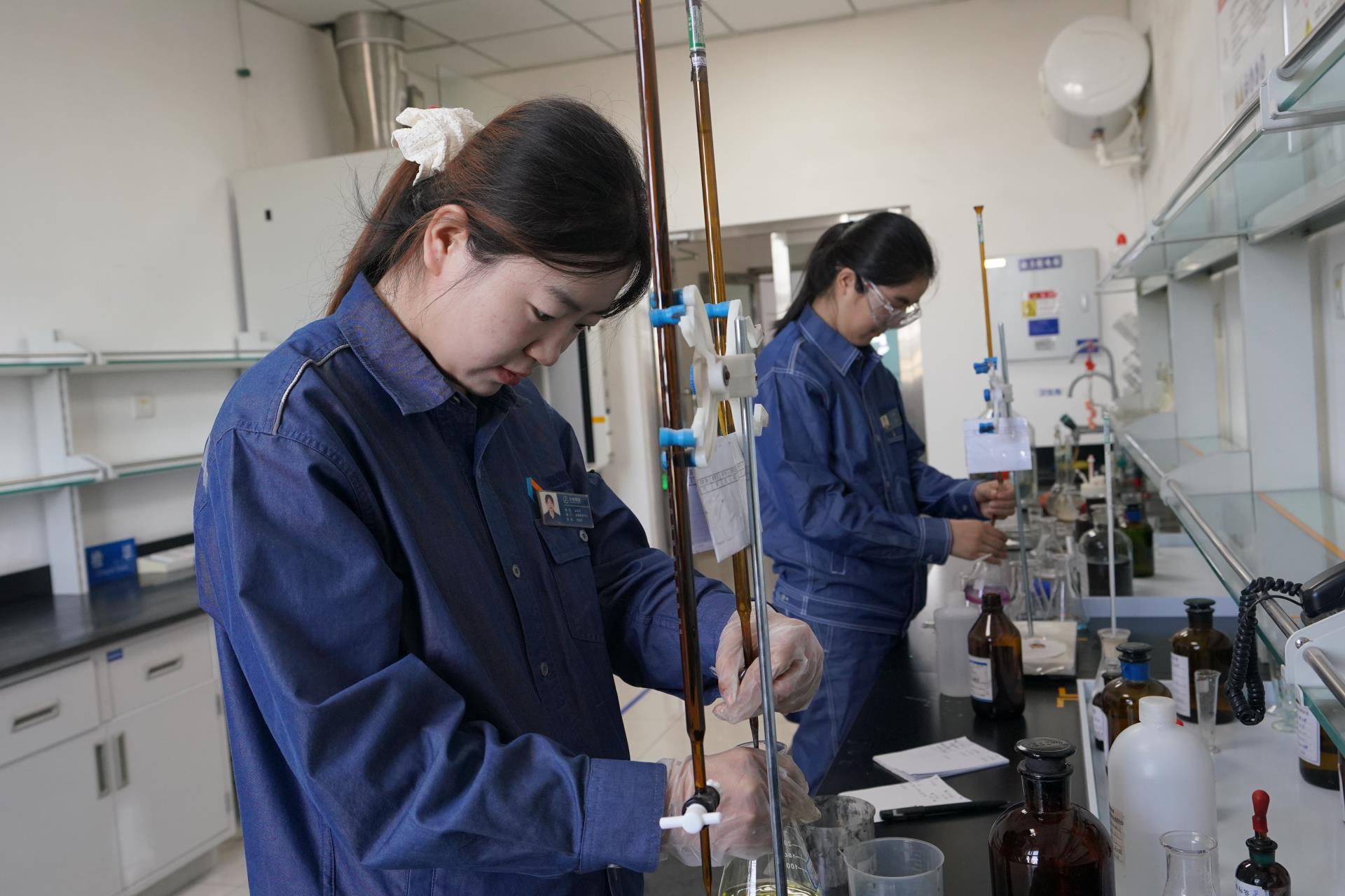 化驗員正在進(jìn)行原鹽中氯離子的檢測分析