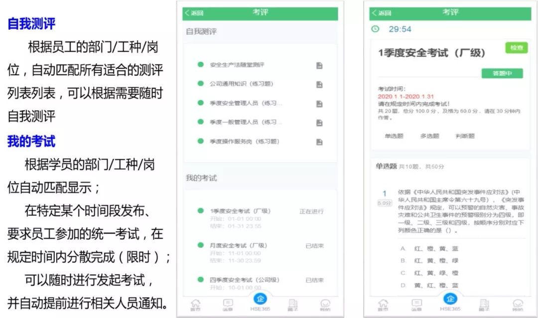 支持萬人同時(shí)考評在線,人員參與無紙化的分散日常測評和考試。擁有龐大的題庫,按學(xué)習(xí)范圍、難易程度、考試題目順序、答案順序等方式進(jìn)行一鍵多形式組卷,即考即出結(jié)果,直接電子化遠(yuǎn)端簽字確認(rèn),將考卷和成績云留存;可打印,支持查詢審核,更好的實(shí)現(xiàn)了“以測代學(xué)、以測驗(yàn)學(xué)、以考嚴(yán)學(xué)”的價(jià)值效果。