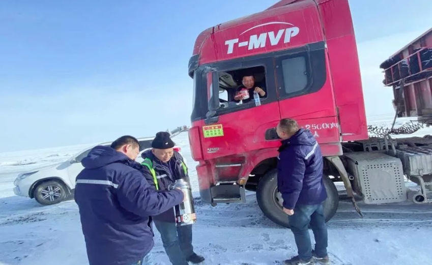 “ 師傅們,辛苦了,來喝點熱水,吃點東西,天冷路滑,一定要注意行車安全。”“謝謝公司對我們的關(guān)心,你們想得真周到,真是太感謝你們了!”一句句熱情的話語,一聲聲貼心的問候,中泰化學(xué)下屬子公司新疆藍天誠達物流有限公司 ( 以下簡稱“藍天誠達”)員工的貼心服務(wù)得到了等待通行的駕駛員一致好評。