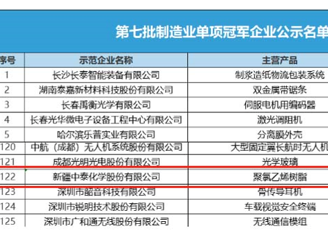 第七批國家級(jí)制造業(yè)單項(xiàng)冠軍企業(yè)名單發(fā)布 中泰化學(xué)上榜