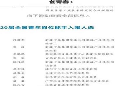 近日,共青團(tuán)中央、人力資源社會(huì)保障部聯(lián)合發(fā)布了第20屆全國(guó)青年崗位能手(標(biāo)兵)、全國(guó)青年崗位能手入圍人選公示,華泰公司技術(shù)處專工段勝利、檢修車間班組長(zhǎng)張濤、檢修車間設(shè)備員陳祥洪位列其中。獲獎(jiǎng)人員名單公示據(jù)了解,“全國(guó)青年崗位能手”是由共青團(tuán)中央、人力資源社會(huì)保障部共同組織開(kāi)展的為黨育人、為國(guó)育才的重要品牌工程,旨在選樹(shù)在經(jīng)濟(jì)社會(huì)建設(shè)第一線、公共管理服務(wù)各領(lǐng)域、重大技能賽事比拼場(chǎng)服務(wù)人民、奉獻(xiàn)社會(huì)、
