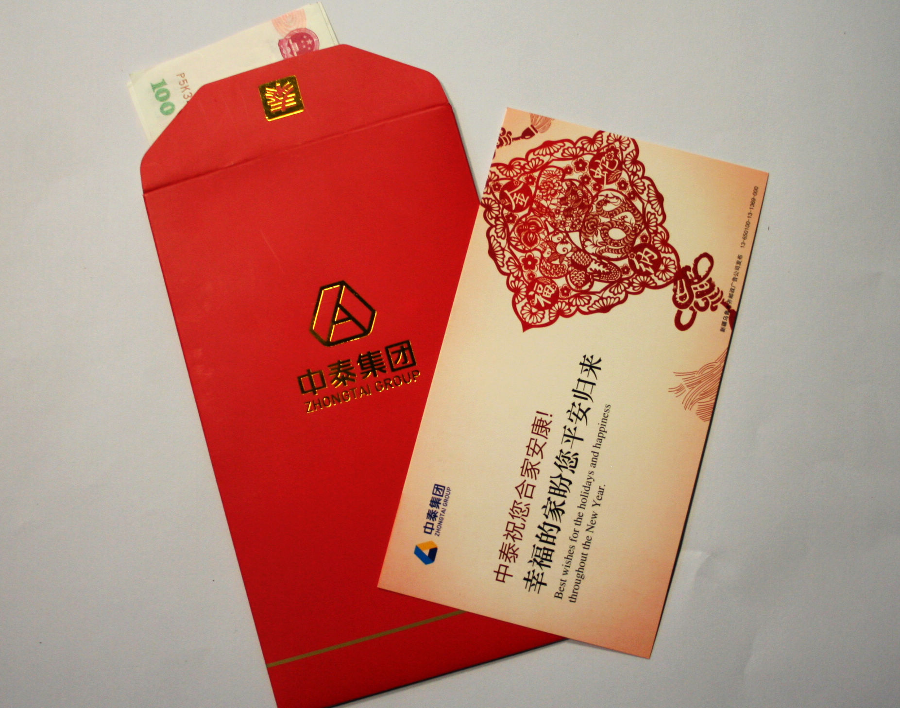 來臨之際,祝您和您的家人身體健康、闔家幸福、事業(yè)有成、新年快樂!”今年的新年,每一位員工都收到了公司發(fā)放的紅包。打開紅包,封口上一個“泰”字,寓意“開泰”,吉祥