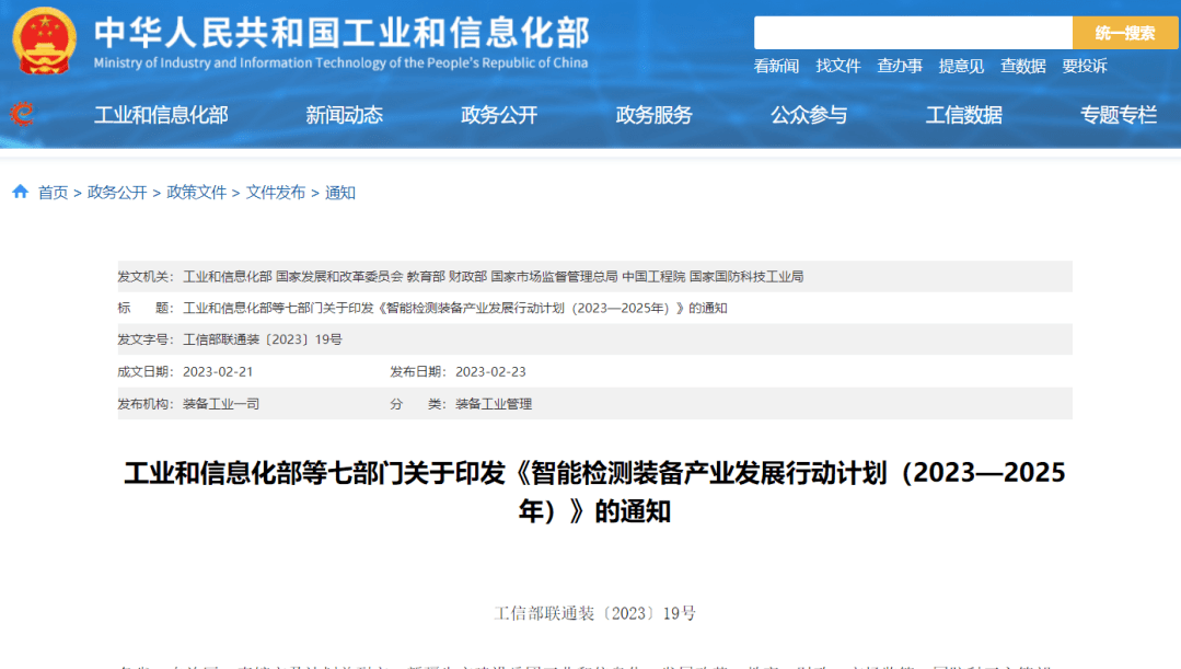 七部門聯(lián)合印發(fā)《智能檢測裝備產(chǎn)業(yè)發(fā)展行動計劃(2023—2025年)》