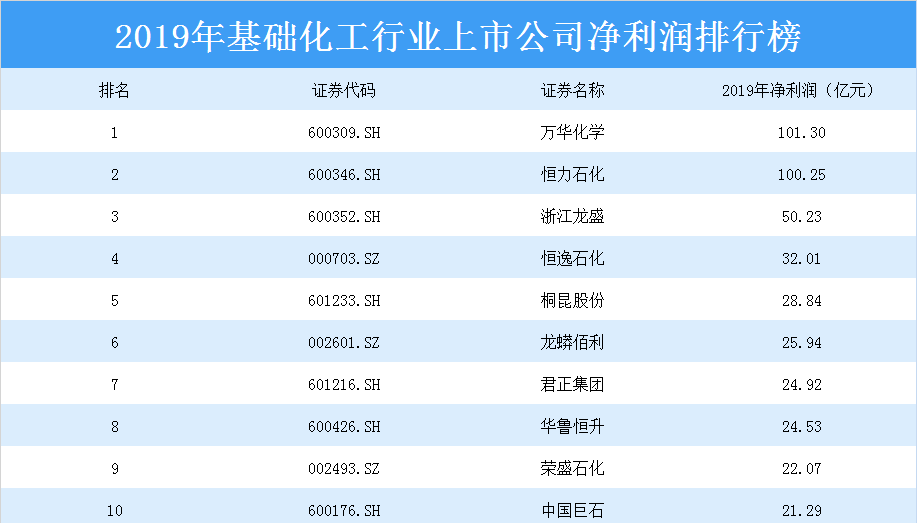 誰是上市化工企業(yè)“盈利王”?前兩名利潤僅差1個(gè)億!