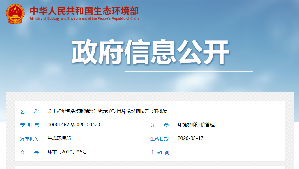392億!兩大煤制烯烴項(xiàng)目環(huán)境影響報(bào)告書獲批